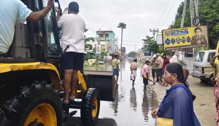 When the Gopalapur lake embankment breached, surrounding areas were completely inundated. Revenue department staff, along with GPOs, worked tirelessly, helping residents reach safer locations and continuously updating higher officials about the situation.